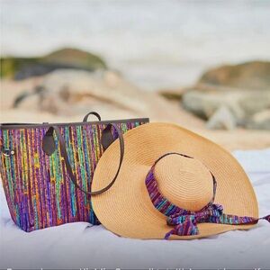Vibrant and stylish, this colorful striped tote bag is perfect for any occasion. Its multicolor design adds a pop of color to your outfit.