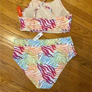 Bright and fun women’s swim set with a vibrant multicolor pattern. Perfect for a day at the beach or pool. Never worn tags still attached - no hygiene label.