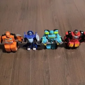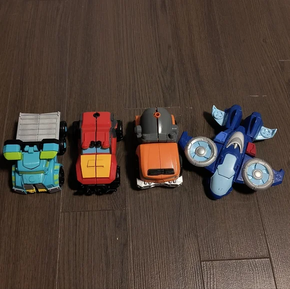 Exciting set of transforming toy vehicles in vibrant colors. Perfect for imaginative play and adventure. Excellent condition