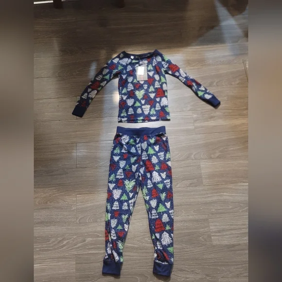 Delightful kids pajama set featuring a vibrant tree pattern. Ideal for a snug and restful sleep.