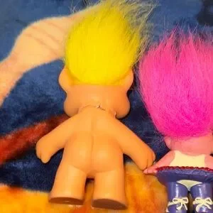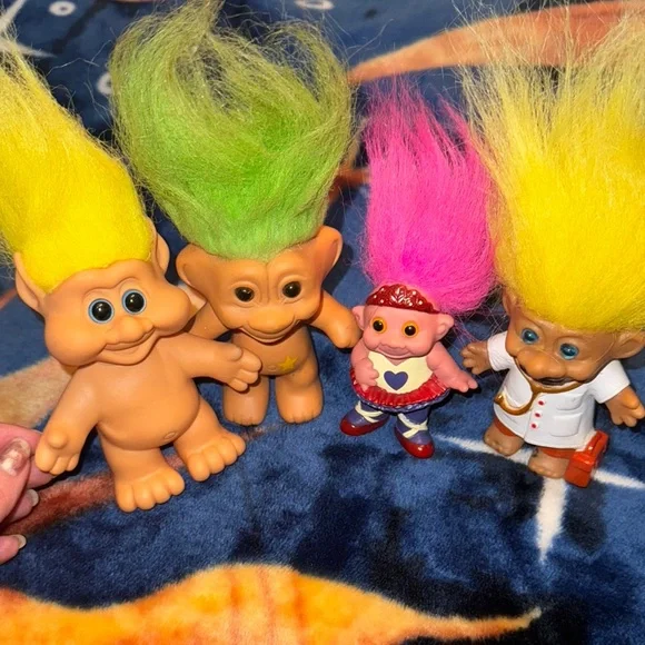 Delight your child with this vibrant set of troll dolls featuring bright yellow, green, and pink hair. Perfect for imaginative play and collecting.