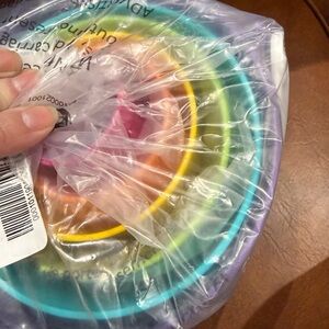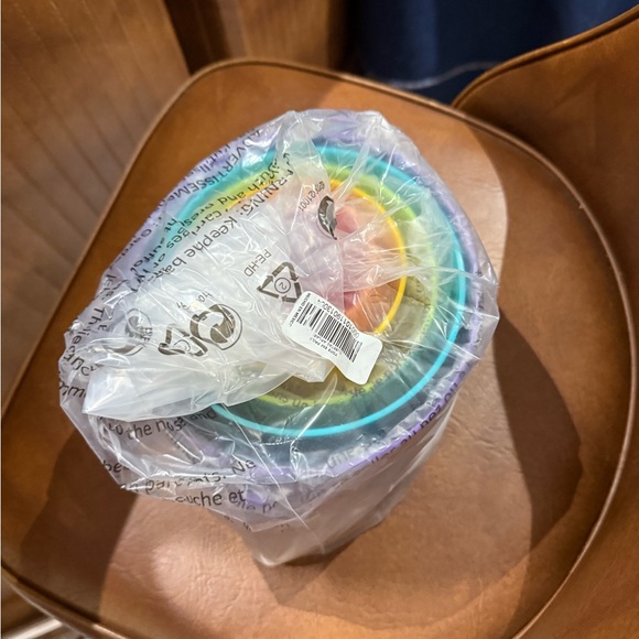 Kids colorful stacking cup set. Tupperware. New never used. The largest one has a handle to carry the whole set around