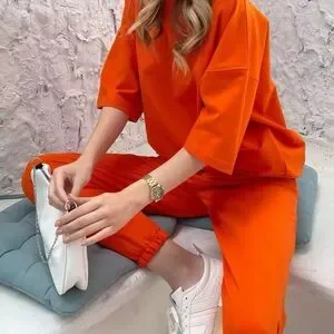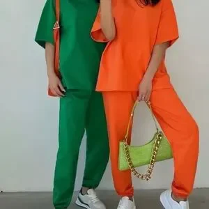 Vibrant and stylish women's pants and jumpsuits set. Available in bold orange color, perfect for making a statement. Comfortable and chic for any occasion.
