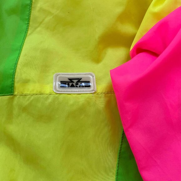 Brighten up your wardrobe with this vibrant women's windbreaker jacket. Featuring a striking combination of pink, yellow, and green, this jacket is perfect for making a bold statement. Ideal for casual outings and adding a pop of color to any outfit.