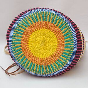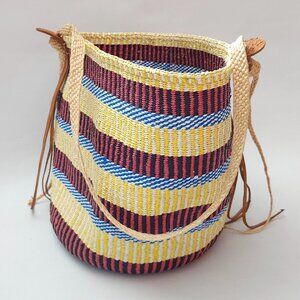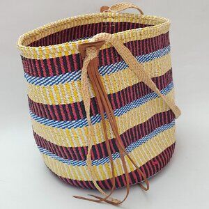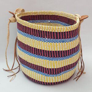Colorful Woven Basket with Leather Accents