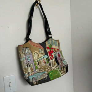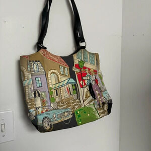 This vibrant tote bag features a unique graphic design, perfect for adding a pop of color to any outfit. Its spacious interior makes it ideal for everyday use.