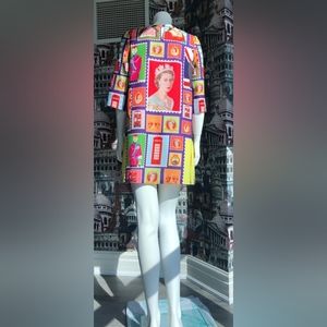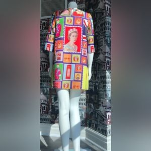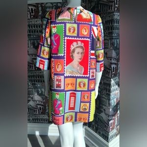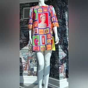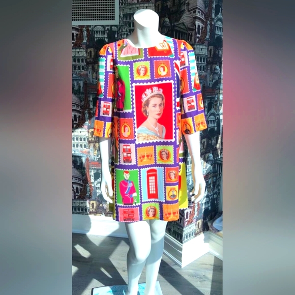 Very bright summer dress with the image of the royal family.