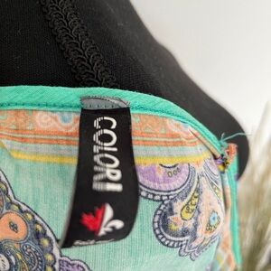 Step out in style with this Colori colorful paisley print dress. Featuring a vibrant mix of teal and orange, this dress is perfect, size large kind of strechy, EUC