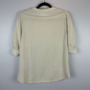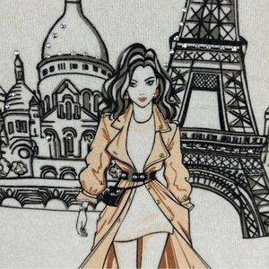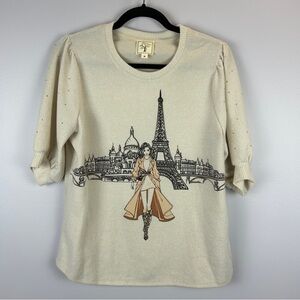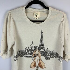 Colortree Casual Paris Themed Embellished Knit Short Sleeve Sweater Medium