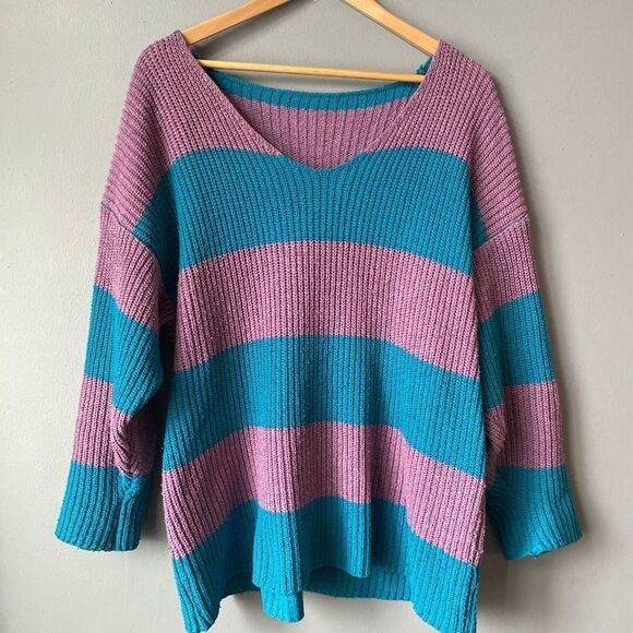 Colour-Block Drop Shoulder Ribbed Knit Sweater✨