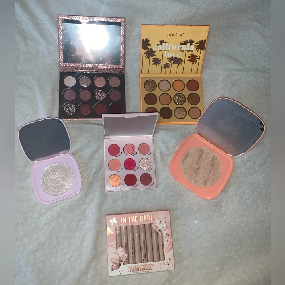Includes: Ménage a Muah palette, California Love palette, Strawberry Shake palette, *Hello Kitty x Colourpop - Snow Much Fun Palette, Candy Floss highlighter, Coastin’ highlighter, and In the Bare eyeshadow sticks.