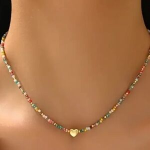 Colourful Beaded Necklace With Tiny Heart Pendant. New