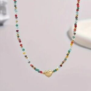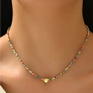 Colourful Beaded Necklace With Tiny Heart Pendant. New