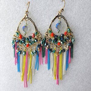 Colourful Crystals Long Tassel Earrings