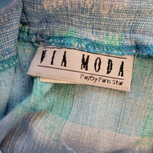Very swishy, nice waist, colourful and fun! A small mark on the front that I didn't notice until photographing, and a small mend on the back.