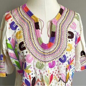 🛑 Colourful Hand Embroidered Mexican Half Sleeve Tunic - S/M