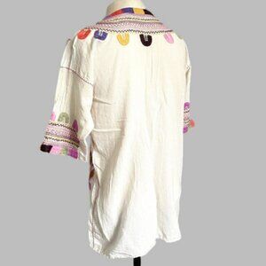 Absolutely stunning, colourful, hand embroidered, cotton tunic blouse with keyhole neckline. Similar to those Jalapa/Xalapa blouses. No Anthropologie here!