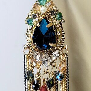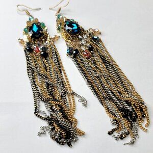 Teal Hued Crystal Rhinestone Tassel Earrings
