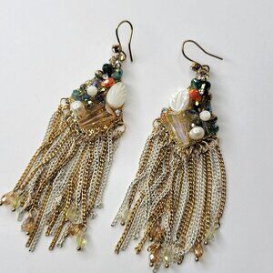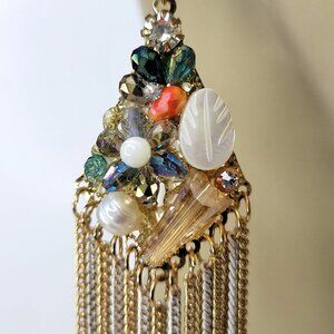 Colorful Bead and Crystal Rhinestone Tassel Earrings