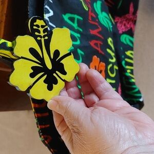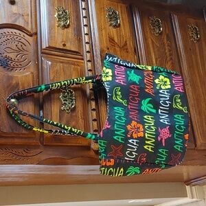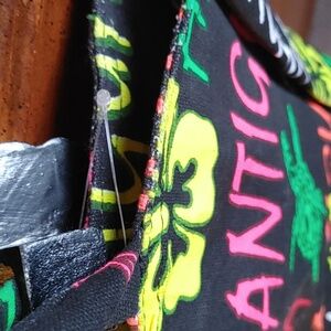 - this tote is eye catching with ebony background and Antigua Logo along with Acquatic Tropical Floral Designs in colourful neon