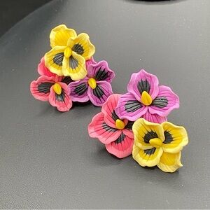 Beautiful pansy earrings made of polymer clay with push back from an estate lot