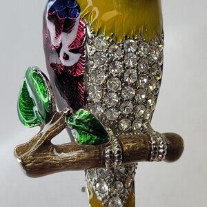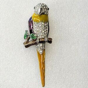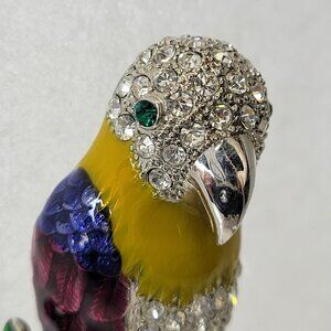 Colourful Parrot or Toucan Brooch Pin Silvertone Bird Brooch with Rhinestones