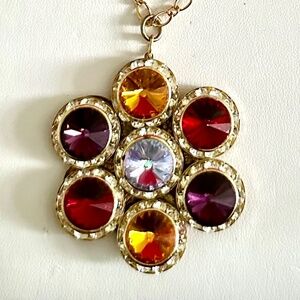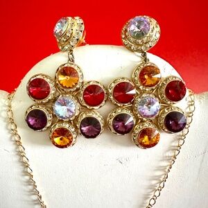 Elevate hour look with this Beautiful Rhinestone flower shape pendant on gold colour chain with matching earrings