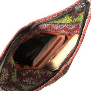 Handmade and unique knit colourful bag Beautiful colour Rounded bottom, bucket style Zipper closure Not lined See photos for the measurements In excellent condition
