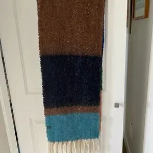 Soft scarf. Polyester so you hopefully will not be itchy. Striking colours. Approx 82 inches long and 13 inches across.