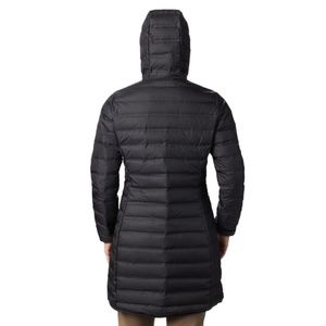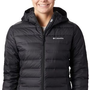 Stylish black puffer jacket. Features a hood and full zip closure. Lightweight and warm. Perfect for cold weather. There is a small hole in the back of the jacket at the bottom. See picture!