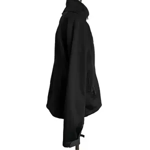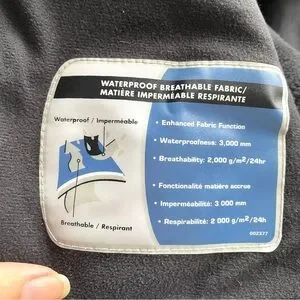 Soft-shell, fleece lined, BREATHABLE, waterproof jacket with zippered front pockets, velcro adjustments at wrists, and an interior pocket at chest.