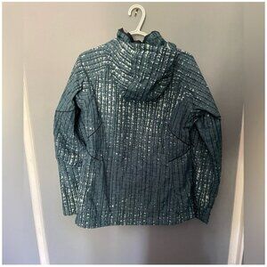 Embrace the elements with the Columbia Bugaboo Jacket, designed for women who seek both style and utility. This medium-sized, blue windbreaker features a practical full zip closure with a snap overlay and a hood for added protection against the weather. The softshell fabric offers durability and a comfortable fit, perfect for transitioning between seasons.
