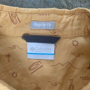 Columbia Button Down Shirt Men 2xL Regular Fit AOP Pattern Yellow Summer Outdoor