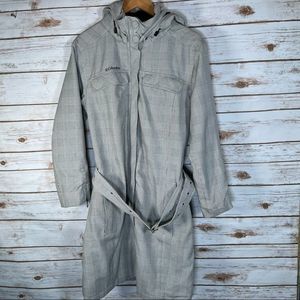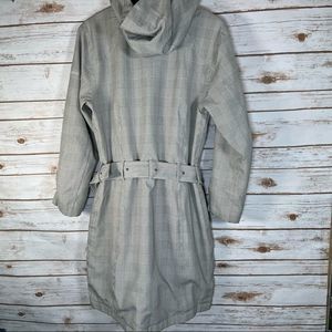 Columbia Checked Long Rain Jacket with Belt and Hood size M