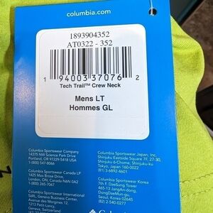 Columbia Crew Neck Shirt - Men's Tech Trail Lime Tee, Size Large Tall