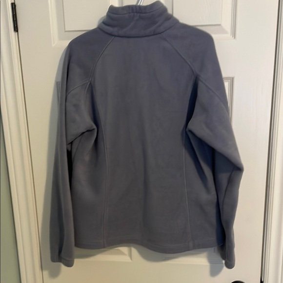 Columbia Dusty Blue Fleece Sweater Size XL. EUC except for zipper pull