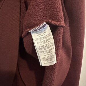 🐾 This Columbia crewneck sweater in deep burgundy serves serious cozy energy with its soft fleece interior and adorable dog print front.