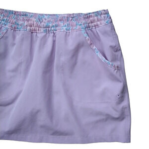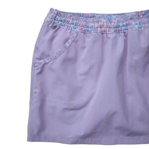 Columbia performance fishing gear (PFG) skort. Floral elastic waistband. Pale violet mini skirt. Attached shorts on inner skirt.