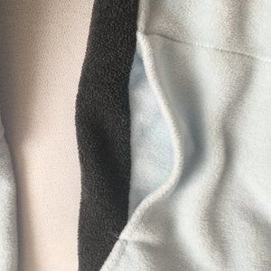 Light (Sky) Blue & Gray full zip fleece sport jacket with two pockets. Soft and warm. In a very good condition, looks good- nice and clean, zip works good. Light blue color more like sky blue in daylight.