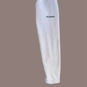 Stay warm and comfortable in this Columbia full-zip fleece jacket, perfect for layering in cooler weather. The soft off-white fleece provides a clean, timeless look, while the embroidered Columbia logo on the sleeve adds a touch of classic branding. Features include zippered hand pockets for secure storage and a high collar for extra warmth.