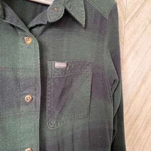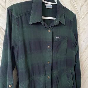 Beautiful green plaid Columbia button down dress with tie. Flattering, comfortable and stylish!