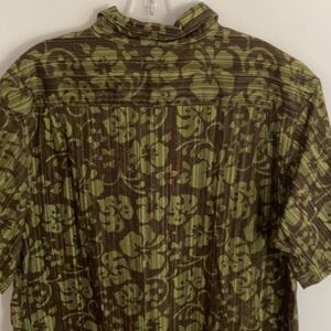 Embrace a laid-back vibe with this Columbia casual button-down shirt, showcasing a striking geometric pattern in earthy green and brown hues. Crafted for comfort and style, it's perfect for relaxed outings or resort wear. Enjoy the quality and design that Columbia consistently delivers.