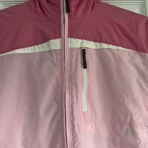 Girl or women hike and rain jacket in light and blush pink.