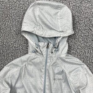 Columbia Hooded Cinched Waist Silver Gray Print Windbreaker Jacket Women's M