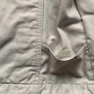 Stonewashed with khaki inner lining.