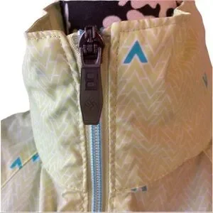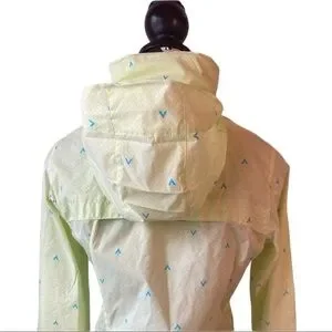 This jacket was only worn once. Like new. Gorgeous pastel yellow and green accents. This jackets features a breathable back, cup up pockets, venting in the sides and a stowaway hood in the collar. Freshly packed just for you.