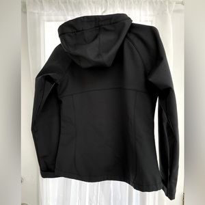 100% polyester omni- shield soft shell; Water and wind-resistant; Contoured sleeve cuffs; Zippered hand pockets with inner phone pocket