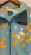 Light blue fleece jacket by Columbia. Features playful orange, green, and white dots. Zip-up front with cozy fit.