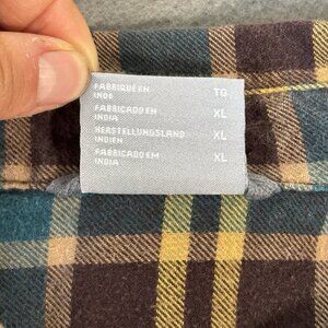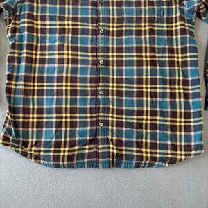 Columbia Lined Flannel Shirt Mens XL Blue Brown Plaid Long Sleeve Shacket Heavy