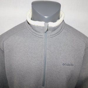 Columbia Mens L Gray Fleece Lined 1/4 Zip Pullover Sweater with Sherpa Collar